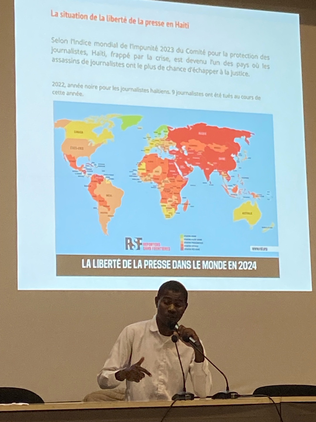 Dix sujets, de 2 à 6 min, leur ont été présentés. Chaque reportage aborde une situation de conflit, ses conséquences sur les populations civiles ou la défense de la liberté et de la démocratie. À l’issue de la projection, chaque élève a voté pour élire le reportage de son choix. L’occasion pour les lycéens et apprentis de toute l’académie de s’intéresser, avec leurs professeures, à l’actualité internationale, en présence du reporter haïtien Jean Samuel Mentor, venu les rencontrer pour parler de son métier et débattre avec eux.