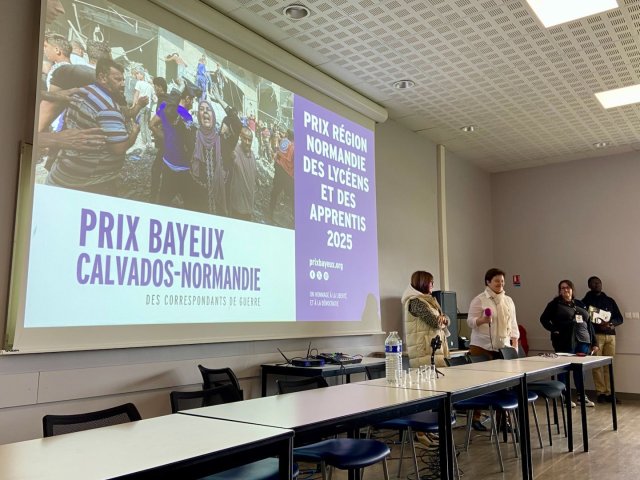 Le vote de plus de 3500 lycéens et apprentis a récompensé le reportage intitulé "Ce que quatre heures révèlent sur la vie des enfants à Gaza", réalisé par Jomana Karadsheh, Tareq Al Hilou, Mohammed Al Sawalhi, Mick Krever et Mark Baron pour CNN, lors de la 32e édition du Prix Bayeux des correspondants de guerre, qui s’est tenue le 11 octobre 2025.